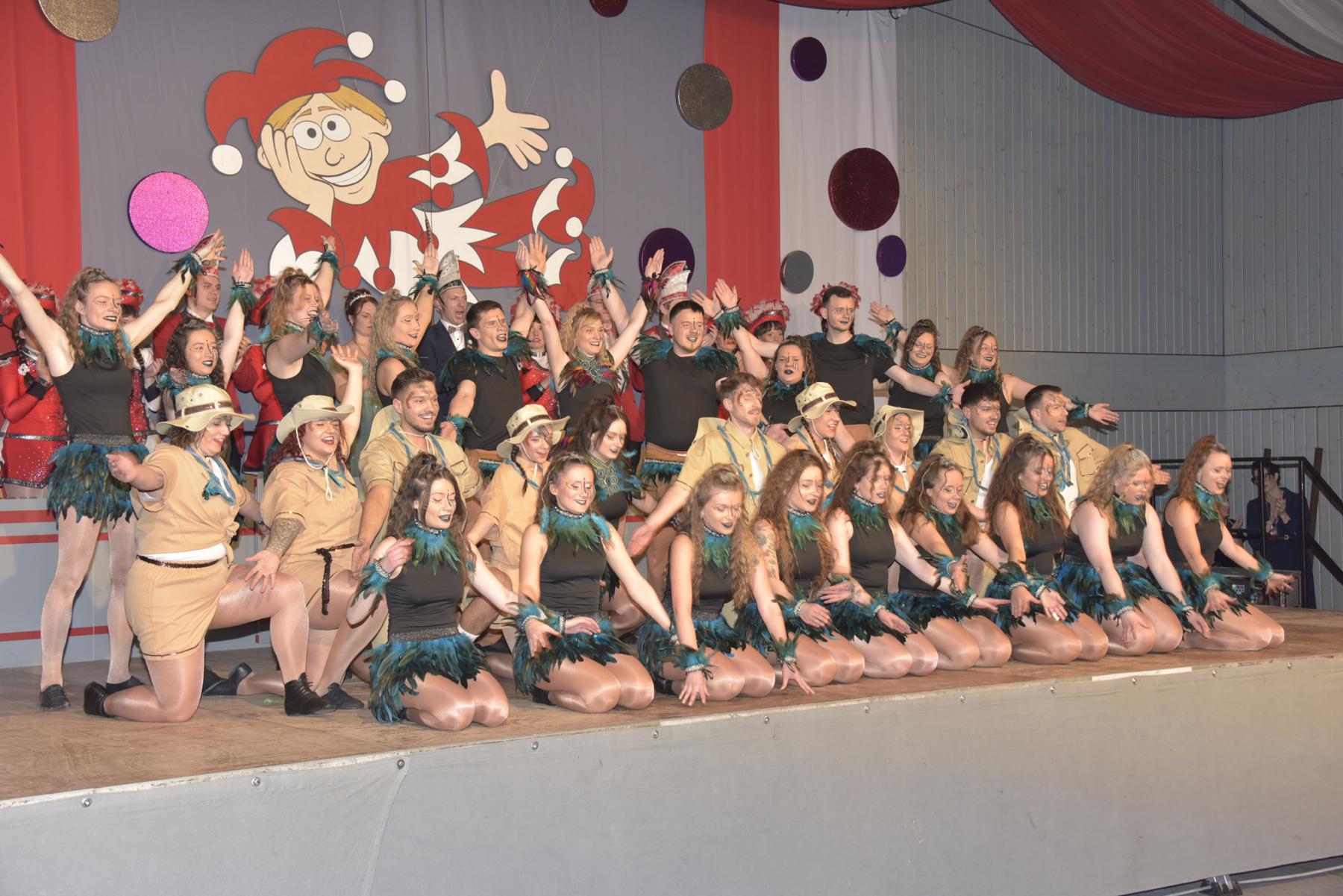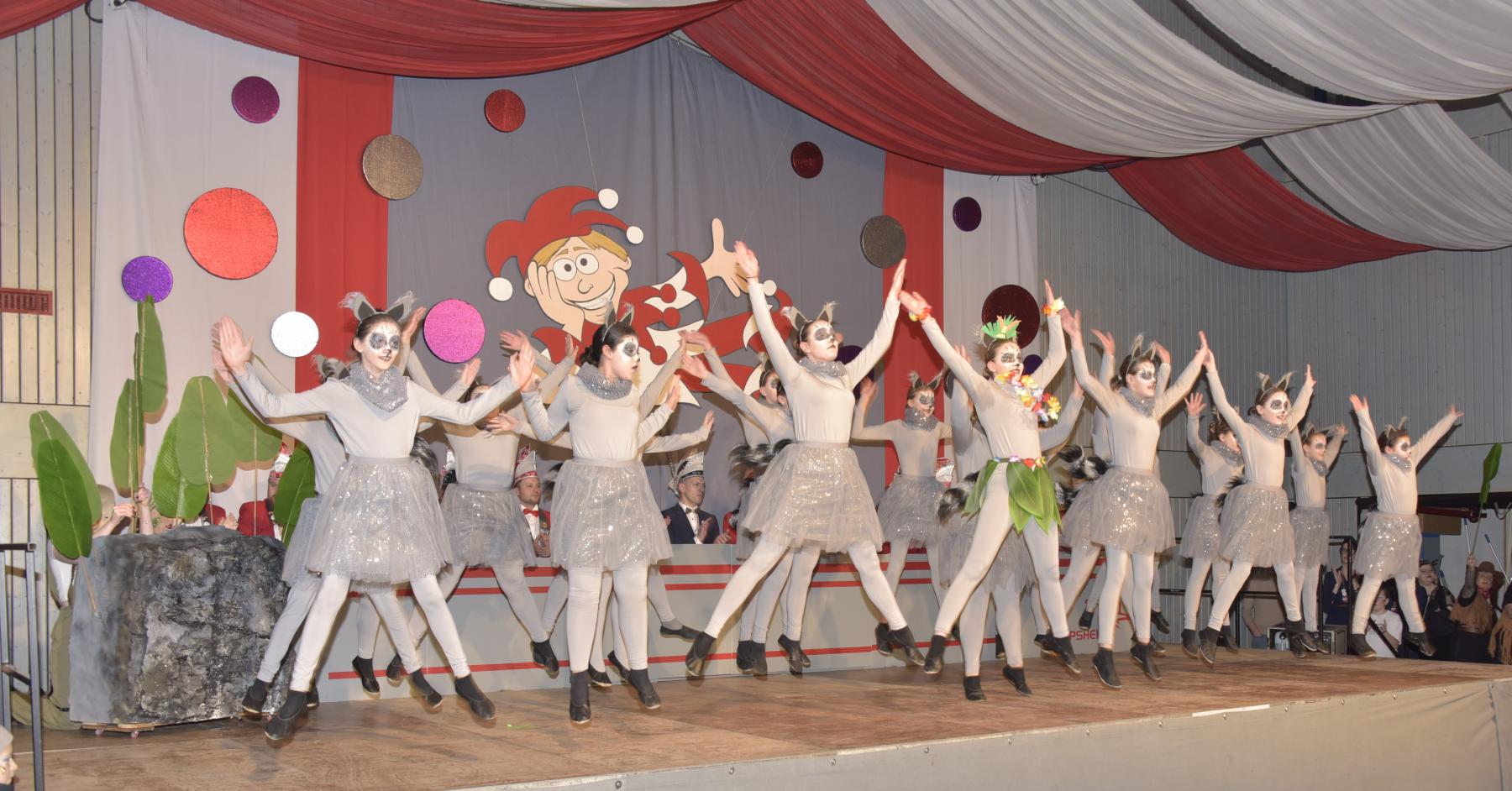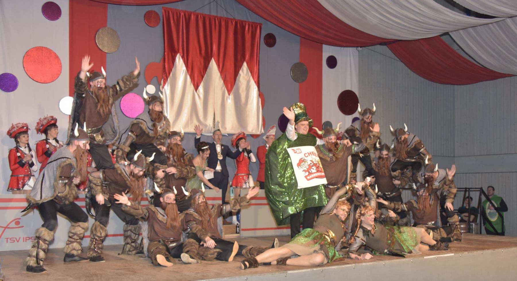 Zum Thema „Endlich Ferien“ wirbelten 25 Tanzkids auf der Bühne und freuten sich, dass der Unterricht endlich vorbei ist. Die „Mission Madagaskar“ setzten ebenso viele Mädchen der Juniorenschautanzgruppe brillant in Szene. Die drei weiblichen Solisten als Tanzmariechen und ein Tanzmajor zeigten Sprünge, Spagat und weitere akrobatische Einlagen und erweiterten weiter die Auftritte des Sportvereins. Mit der 30 Personen zählenden Schautanzgruppe erlebten die Zuschauerinnen und Zuschauer Tanzkunst, Choreografie und Geschwindigkeit vom Feinsten bei „Into the Jungle“. Nicht minder anspruchsvoll war der fetzige Marschtanz der Prinzengarde mit 16 jungen Damen. Zwischen der fränkischen Heimat und dem hohen Norden bewegten schließlich sich die 18 Männer des Elferrates bei den „Franken-Wikingern“ gekonnt und lustig auf der Bühne und vereinten sich friedlich bei Frankenwein und ließen den Met beiseite. Auch die Gäste von den Mönchswaldfüchsen aus Mitteleschenbach hatten mit einer Darbietung der Prinzengarde ein schönes Gastgeschenk im Gepäck.